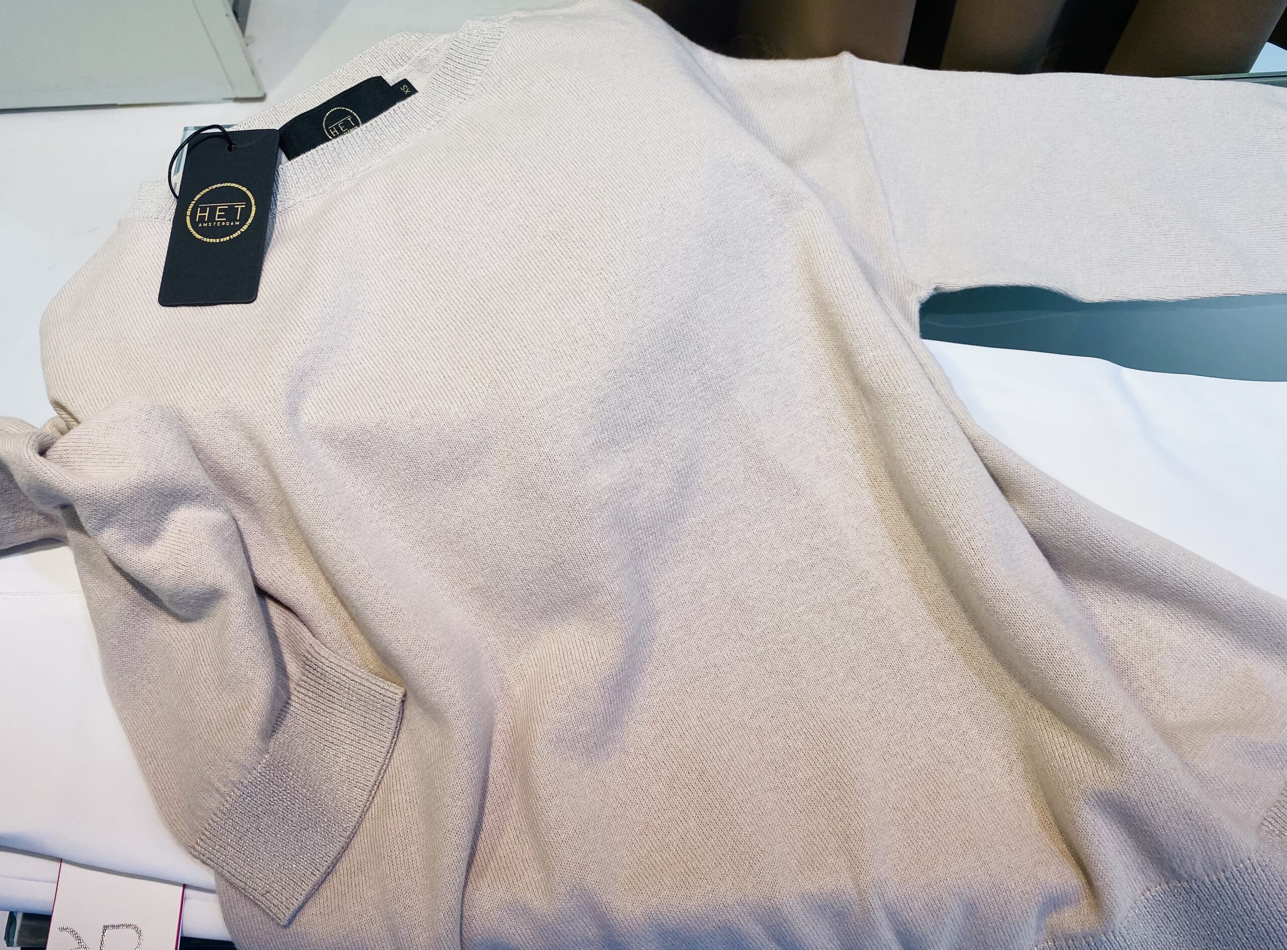 Pullover katoen met lurex kraag